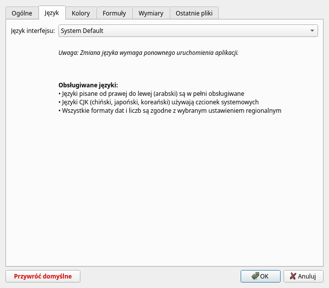 Ważne: Zmiana języka wymaga ponownego uruchomienia aplikacji